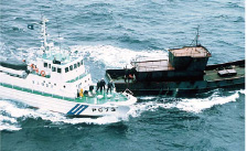 三重県大王埼沖を逃走する不審船に強行接舷する巡視艇