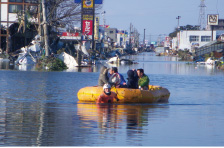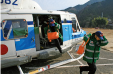 集中豪雨や、地震などの自然災害に対処するため、第四管区海上保安本部では、海上での救助活動や災害応急活動のみならず、陸上部においても、豪雨等の水害により道路が寸断された場合など、孤立者、負傷者の救助や緊急輸送等の災害応急活動を迅速・的確に対応しています。