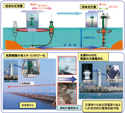 1日約600隻を超える船舶が行き交う中部経済圏の海の玄関口である伊良湖水道では、巡視船艇の常時配置、レーダー、A I Sなどを活用した巨大船の管制の他、航行安全情報の提供を行うことにより船舶航行の安全を図っているほか、湾内においても省エネルギー化を踏まえた航路標識の太陽電池LED化、ふくそう海域における視認性、識別性の向上のため灯浮標の浮体式灯標化など高機能化の整備に努め、船舶交通の安全と運航効率の向上を図っています。