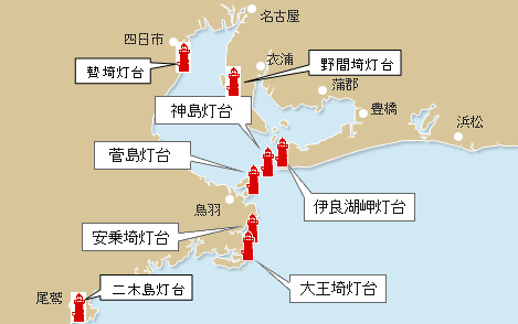鳥羽の東3キロメートル、坂手島(さかてしま)、答志島(とうしじま)と共に鳥羽港を囲んでいるのが菅島です。島は東西に約4キロメートルの細長い島で、灯台はその東北の鼻に古風な姿で立っています。 菅島周辺の海域は数多くの岩礁があり、古くから難破する船が多く、船乗りから鬼が崎と呼んで恐れられていたそうです。徳川氏が江戸に幕府を開いた江戸時代、江戸の急増する人口に対応するため、現在の山形県酒田市から日本海を経由し、下関から瀬戸内海に入って、大阪へ、さらに紀伊半島をまわって江戸へという、いわゆる西回り航路が寛永10年(1670年)に開発され、東北の米を江戸へ運ぶことになりました。