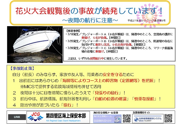 プレジャーボートの安全運航の徹底を!~7・8月に衝突・乗揚事故による負傷者続発~