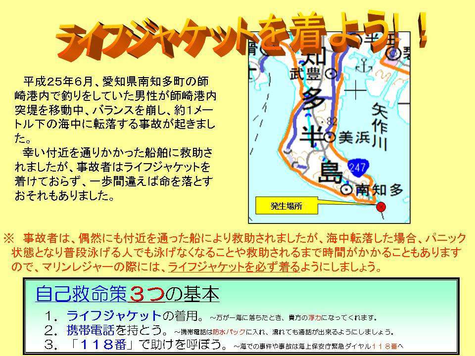 岸壁、防波堤ではライフジャケットを着けよう!!