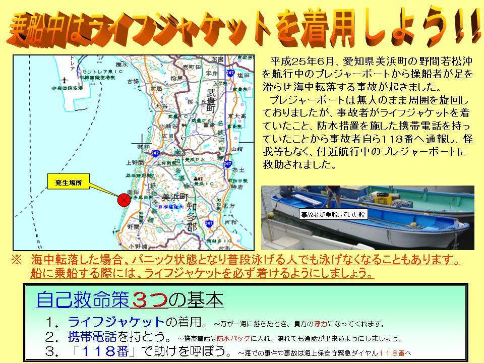 プレジャーボートなどに乗船中はライフジャケットを着用しよう!!