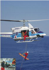 四日市海上保安部における海難件数(人身事故を含む)は過去2年間に63件発生しており ますが、内20件(3割強)が、118番通報を端緒として巡視船艇等が出動しております。 118番通報が功を奏した例として、 @ 平成16年8月6日夜間、手漕ぎゴムボートにより、男性2名が揖斐川導流堤に上がり 磯釣りを行っていたが、手漕ぎボートの係留索がとけ、前記導流堤から帰ることが出来 なくなったが、118番通報したことにより、当部により無事救助された。 A 平成17年7月21日には、プレジャーボートにより、男性1名、女性1名が遊漁中、機 関故障を起こし、航行不能となったが、118番通報したことにより、無事救助された。 があり、通報が遅れれば、尊い命が失われかねないところでした。 自己救命策三つの基本・・・大切な命を自分で守るために! その1 海上に浮くこと → 救命胴衣の着用 その2 連絡手段をもつこと → 携帯電話の携行(防水パック利用) その3 救助の要請をすること → 118番の有効利用 |