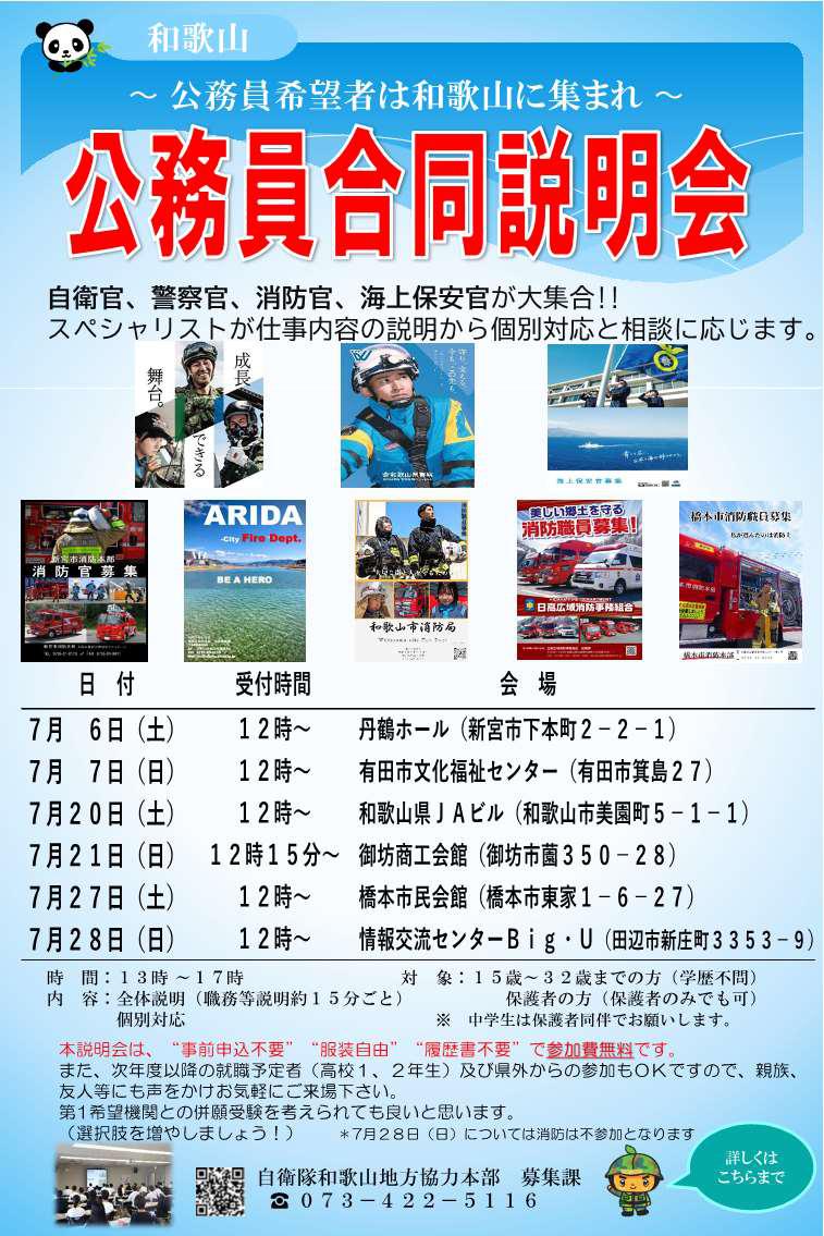 和歌山県6カ所で公務員合同説明会を実施します。(申し込み不要・参加費無料)