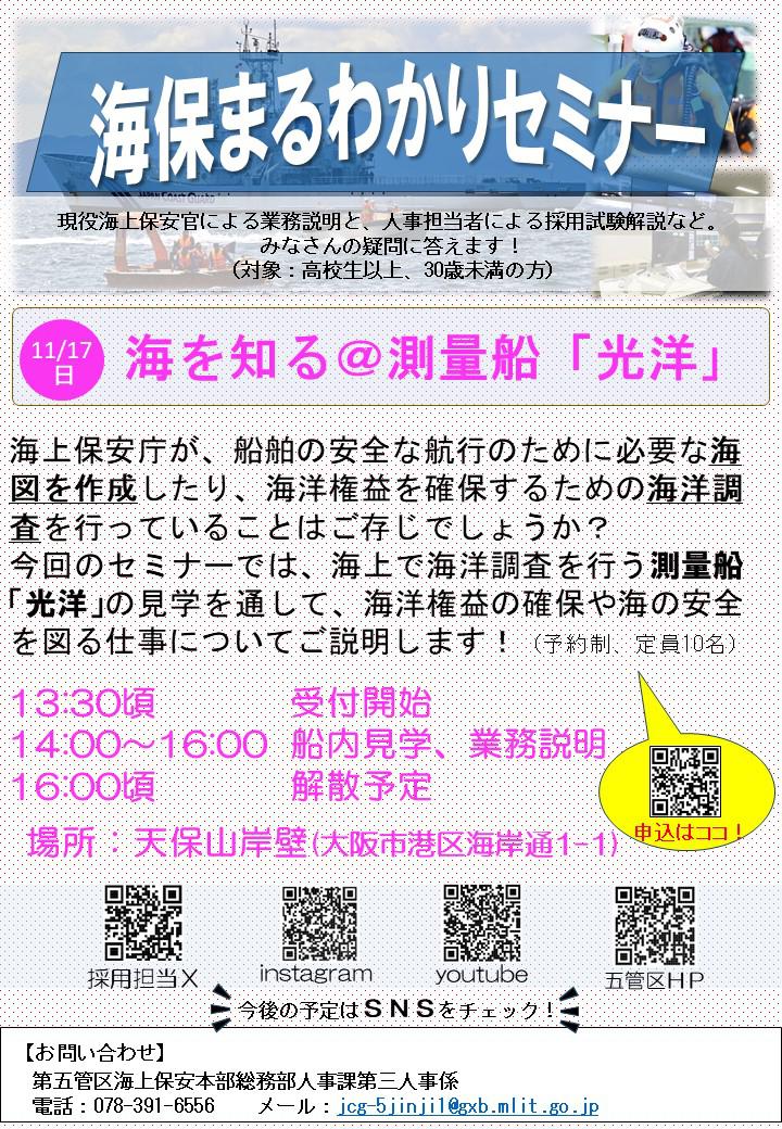 【海保まるわかりセミナー】海を知る@測量船「光洋」の開催について