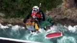 平成21年5月28日、小型漁船が徳島県美波町沖において転覆し、その後船長は岩場に避難しましたが動けなくなったため、吊上げ救助を実施しました。 |