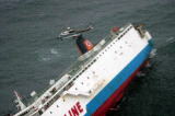 平成21年11月13日、フェリーが熊野灘において、船体が傾いたため、乗客乗員21名の吊上げ救助を実施し、残り7名は救命筏(ライフラフト)による救助を実施しました。 |