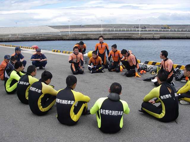 泉佐野市消防本部潜水隊との合同潜水訓練