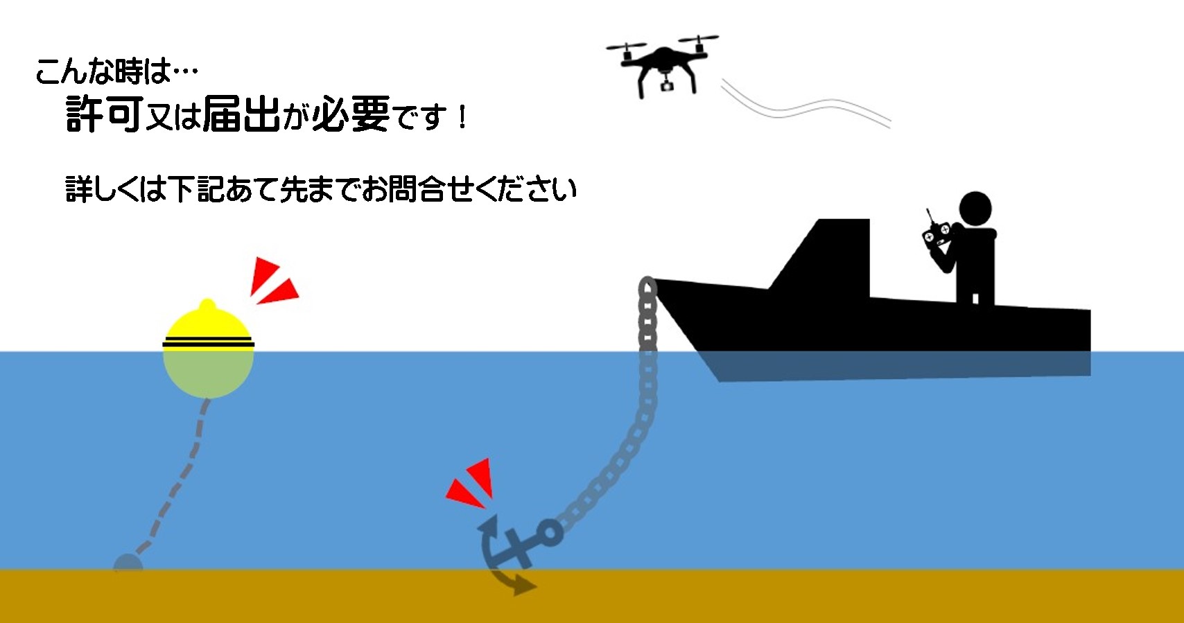 ただし、ドローンの使用にあたって、作業船を配置する場合や海上にブイなどの工作物を設置する場合は、 |