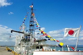 巡視船きいは、和歌山を拠点とする総トン数約1000トンの大型巡視船です。 本船は、一般の巡視船としての役割のほか、第五管区の警備実施等強化巡視船に指定されています。 警備実施等強化巡視船とは、通称“特警船”と呼ばれ、特警隊員(乗組員)により構成される“特別警備隊”から成るものです。 日頃から海上におけるデモ活動への対応など様々な訓練を行い、有事に備えています。