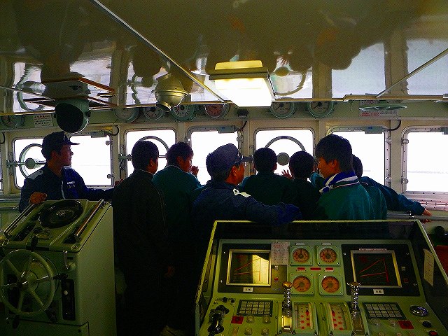 学生達は公室において巡視船についての説明を受けた後、操舵室、機関室、調理室等の見学を行い、海上保安官の日々の業務に興味津々の様子でした。