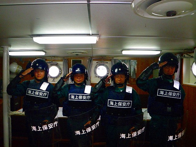 また、特警船としての業務も体験してもらうため、特別警備隊の装備を装着を行いました。