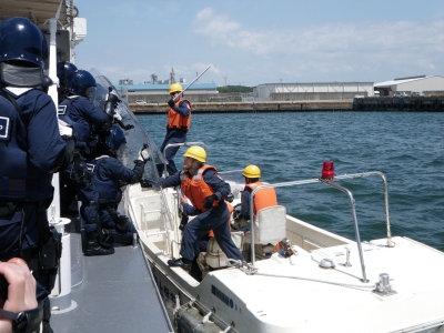 船上隊形とは、海上警備実施などに従事する場合において、特別警備隊員が小型の巡視艇に乗り組み、効果的に警備活動を行うものです。