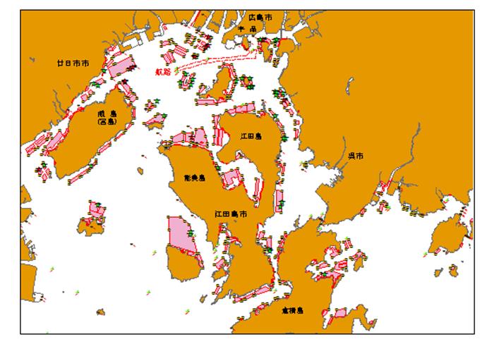 広島港および付近かき筏許可区域図(画像クリックでPDF版が開きます)