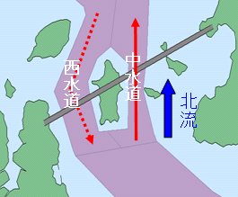 来島海峡の潮流の流向によって航行する航法 順中逆西(じゅんちゅうぎゃくせい)って何? |
