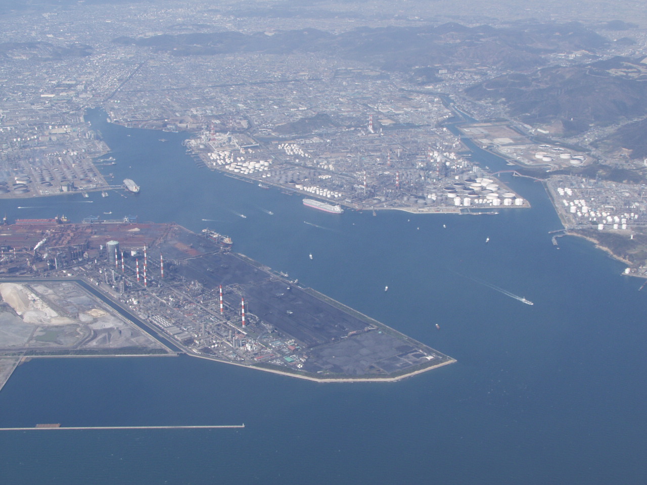 水島地区は、鉄鋼・石油精製・石油化学・自動車工業等により形成される大規模な臨海工業地帯です。