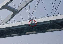 水域にある橋梁下の可航水域又は航路の中央、側端及び橋脚の存在を示すため、橋げた、橋脚等に設置し光を発するもの |