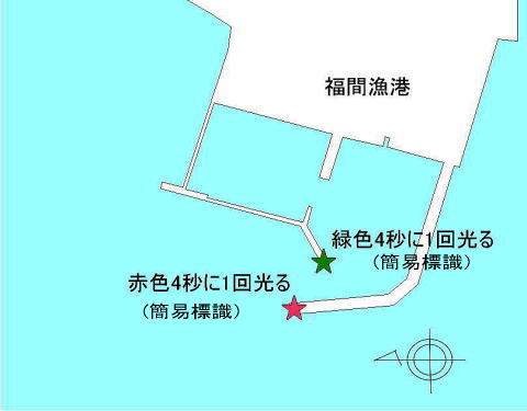 ○港口前面の西側沖には、釣り人用の固定イカダが設置してあるので注意。