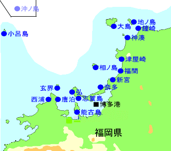 九州北西岸及び福岡県沿岸域にある港湾等に入港する際の目標となる航路標識・簡易標識、港湾付近の状況(定置網、暗礁等)や注意事項を掲載しています。