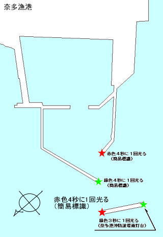 港湾要目 ○漁港種別:第1種 ○動力漁船: 56隻 (2006福岡県水産林業部漁港課資料から) ○水域利用団体 福岡市漁業協同組合奈多支所 航行安全上の留意事項 ○港周辺は比較的浅水深、漁船やプレジャーボート以外は要注意。 ○夏場、漁港の南西側で遊泳者、ゴムボートなどが沖合に出てくる場合があるので注意。 ○東側防波堤と沖防波堤の間で、潮流による砂泥等の堆積のため浅くなっている場所がある。 |