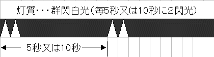 灯色は白で、光り方は群閃光(毎5秒または10秒に2閃光)に統一されています。