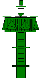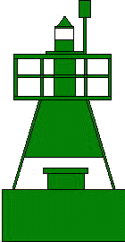 | 1.左げん標識は、航路 又は、可口水域の左側 の端を示します。 2.左げん標識の塗色及び灯色は 緑で、緑色円筒型のトップ マークがつきます。ただし、 円筒型の浮標(無灯火ブイ) は、形状で判別がつくため、 トップマークは付きません。 3.灯色は緑です。 |