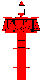 水源 | 1.右げん標識は、航路 又は、可口水域の右側 の端を示します 2.右げん標識の塗色及び 灯色は赤で、赤色円すい型 のトップマークがつきます。 ただし、円すい型の浮標(無 灯火ブイ)は、形状で判別が つくため、トップマークは付き ません。 |