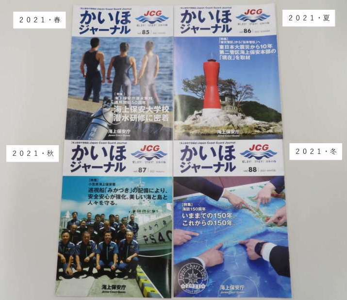 「唐津海上保安部からのお便り」には唐津海上保安部の活動状況や周知情報等を掲載しております。 なお、「唐津海上保安部からのお便り」は唐津市近代図書館に設置しております、海上保安庁パンフレット内にも掲載しております。 唐津市近代図書館に「かいほジャーナル バックナンバー」を設置しております。 2020年・春に発行された82号から最新の2021年冬に発行された88号まで、 ご自由にお持ち帰りができるようになっておりますので、ぜひ足をお運びください! |