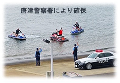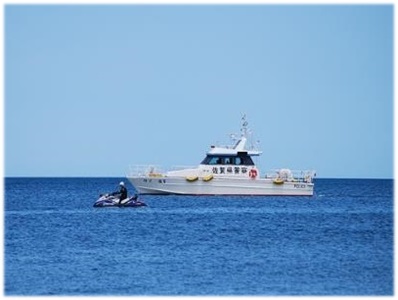 唐津海上保安部、唐津市、唐津警察署は、佐賀県水難救済会、小型船安全協会の協力を受けて、海水浴場における水上オートバイの危険運転等への対策準備とする「水上オートバイ取締り合同訓練」を実施しました。 皆が集う安全・安心な唐津の海をめざして、各機関連携協力し対応してまいります。 |