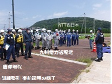 唐津海上保安部、九州電力送配電株式会社、NTT西日本は、災害時における相互協力協定に基づき、全国初となる3機関合同で、自然災害により途絶した離島のライフラインの迅速な復旧、確保を想定した人員資機材搬送訓練を実施しました。 唐津市 島民の皆様の安全安心の確保に努めます。 |