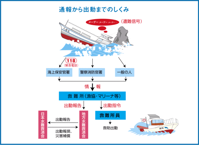 | 水難救済会は、海で遭難した人々の救助を行う民間のボランティア団体です。 | ||