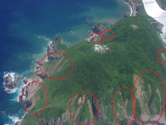 男女群島で土砂崩れが発生 平成27年7月9日(木)、長崎県五島市所在の男女群島の「女島」と「男島」の全域において、多くの土砂崩れが発生していることを確認しました。