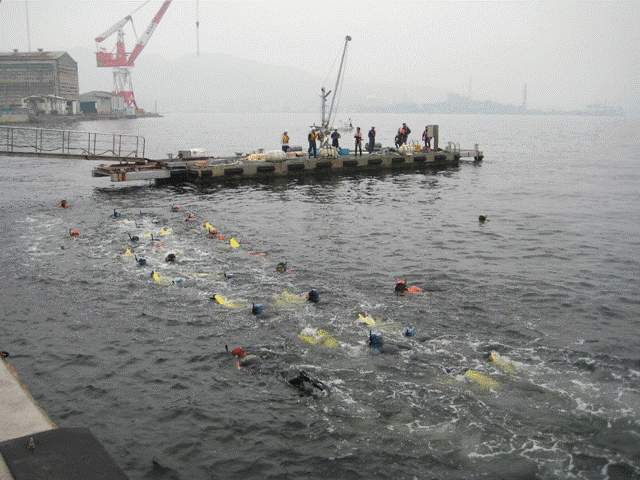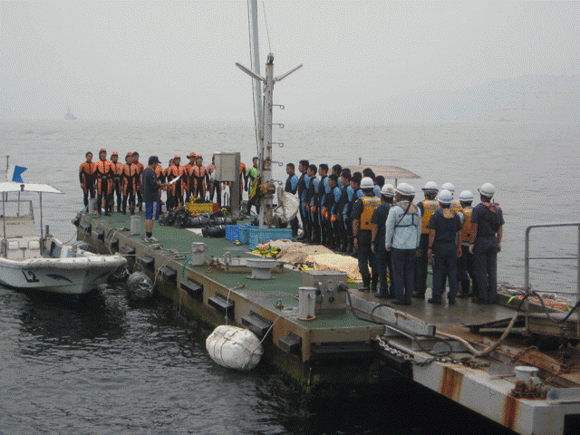 巡視船やまくには、平成23年6月8日から同年7月1日までの間、広島県呉市に所在する海上保安大学校において、潜水士育成のための潜水研修に支援船として参加しました。