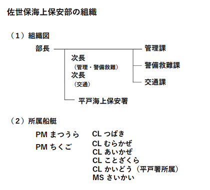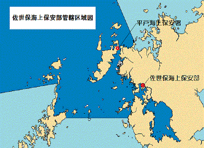 - 当部では、九州北西方海域における治安の維持、船舶交通の安全確保、海難救助、海洋環境の保全、海上防災に関する業務を所掌しています。管轄区域は、長崎県北部の佐世保市など4市2郡であり、担任水域は壱岐・対馬付近等を除く県北西部の海域となっています。