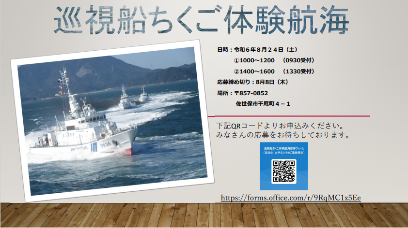 令和6年8月24日(土)中学生以上限定の巡視船ちくご体験航海を実施します。