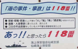 海上保安庁は、海上における事件、事故の緊急通報用電話番号として、局番なし3桁電話番号「118番」の運用をしています。 |