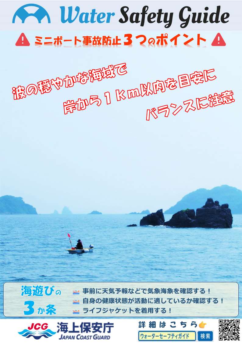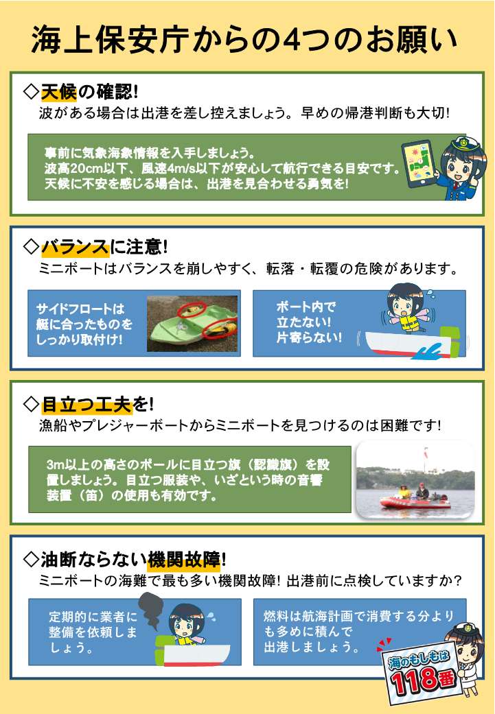 | ミニボート乗船時の4つのお願い | ウォーターセーフティガイドのサイトは こちら |
