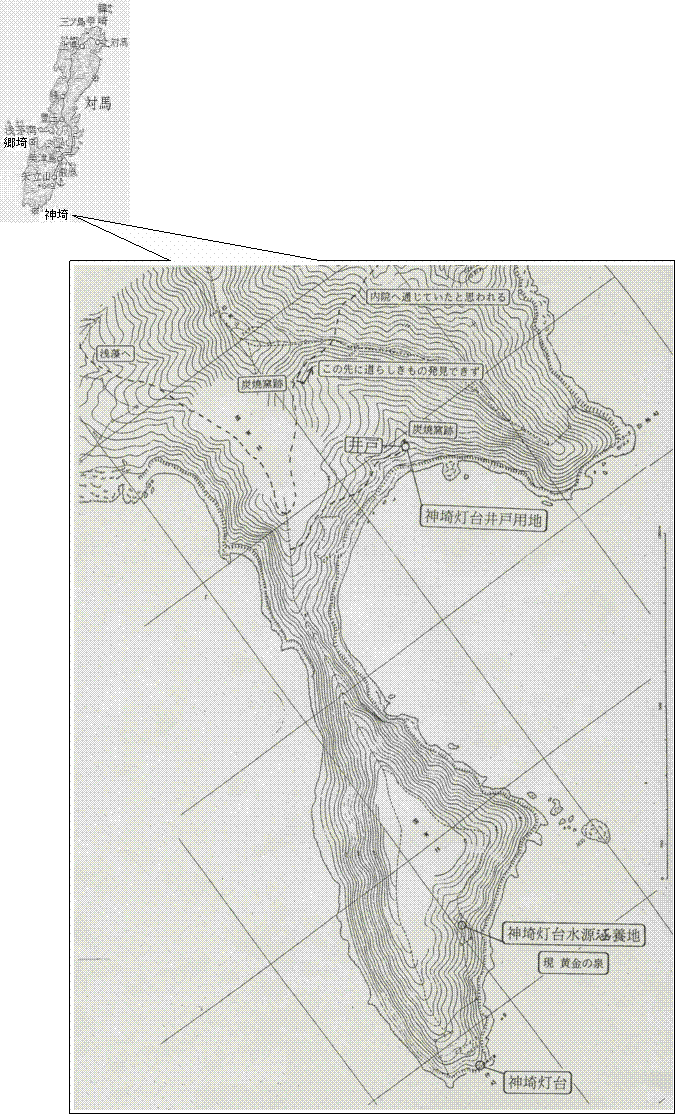第2弾では、前回に引き続き神埼灯台に関するエピソード「神埼灯台の黄金の泉伝説」と「戦時中の神埼灯台と職員の状況」についてを、対馬漁業誌及び太平洋戦争末期時における神埼灯台へのアメリカ艦載機による攻撃の記録日誌を基に、ご紹介したいと思います。