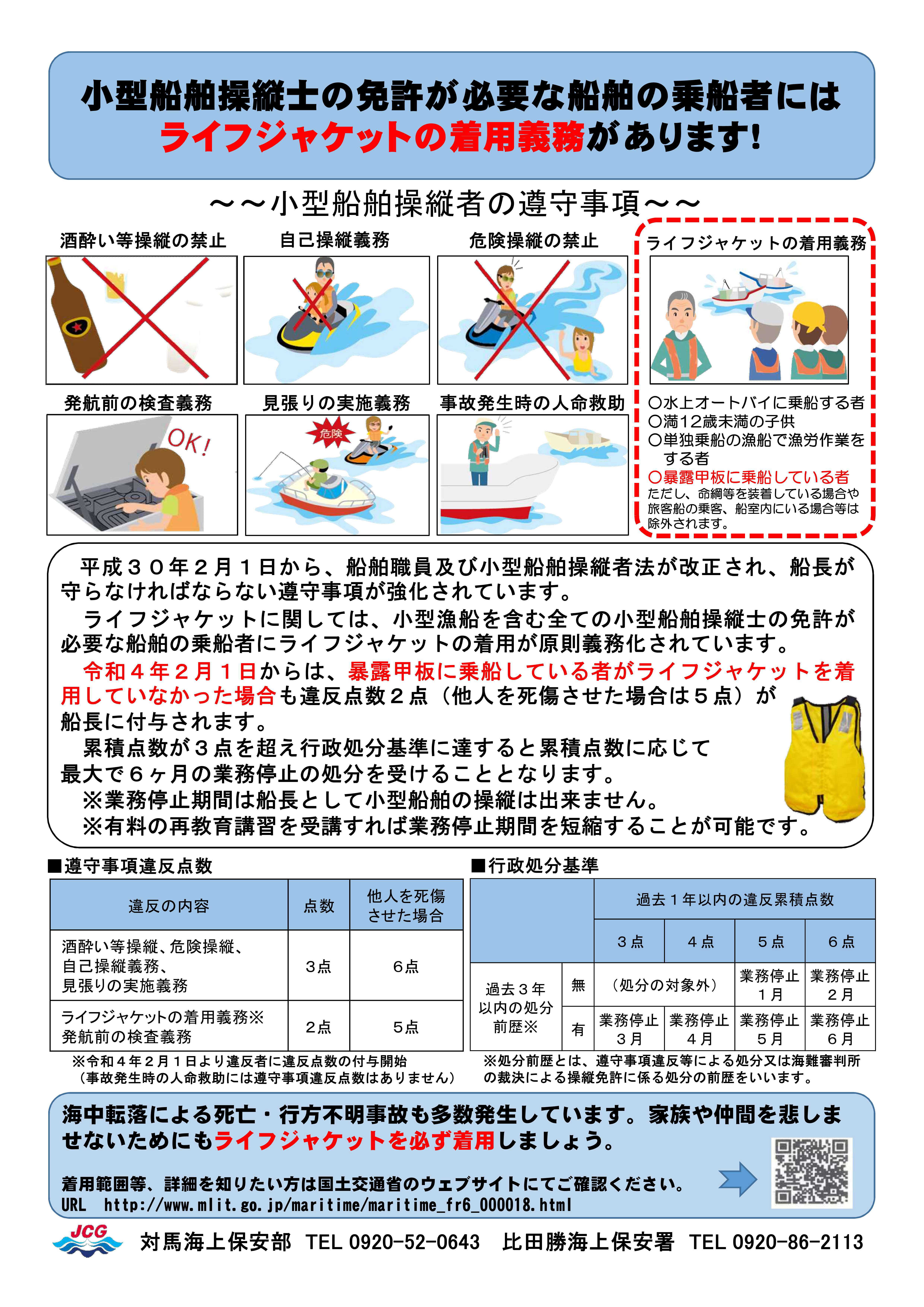 小型船舶の暴露甲板に乗船する者へのライフジャケット着用義務違反に対する