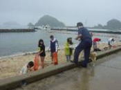 海上保安庁は、船舶の衝突や乗揚げ事故による油の流出などの事故による災害や台風や地震などの自然災害の防止に取り組んでいます。また、海をきれいにするため、海岸の清掃を行ったり、環境教室などを開催しています。 |