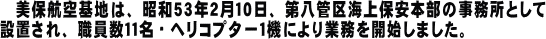 | 昭和53年2月 | 美保航空基地発足 (ベル212型ヘリコプター1機が配属される) |