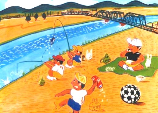 いちろうくんは かわらへ ピクニックに いきました。