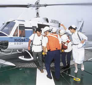 洋上救急事業では、洋上で傷病者が発生し、医師の救急往