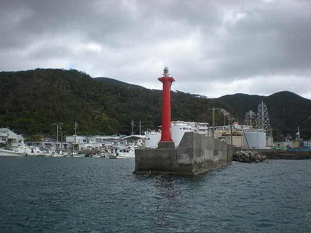古仁屋港入り口の右舷標識。瀬戸内漁協、保安署などがある。