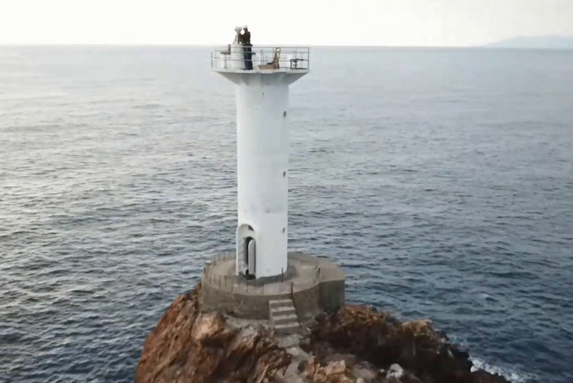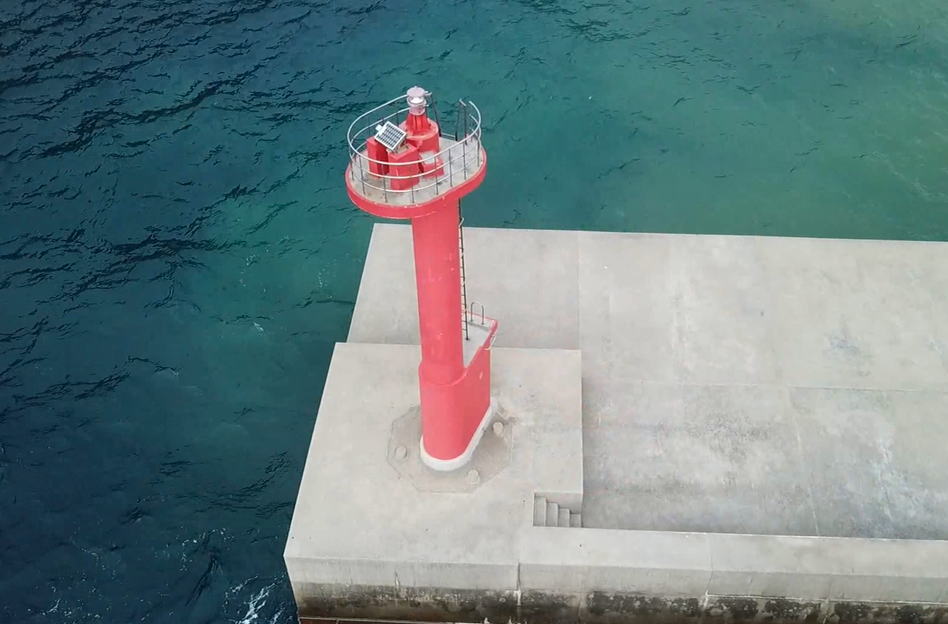 美しい鹿児島の海で、船の安全を見守る灯台の動画を、