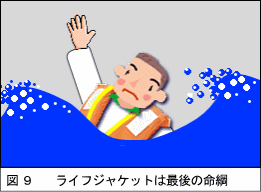 ここで、ライフジャケットにどれ程の効果があるかを、具体的に考えてみましょう(図9参照)。