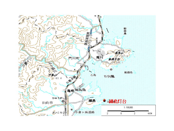 細島商業港は、天然の良港を形成しており、古くは宋・明との貿易の寄港地として栄え、また、徳川時代には、日南諸大名の参勤交代で細島・大阪間を御座船が行き交い、当時既に「常夜灯」が設置されていたと伝えられています。