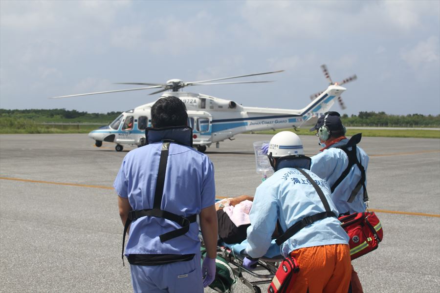 与那国島からの急患輸送 令和2年9月5日午前10時27分頃、沖縄県防災危機管理課より急患輸送要請がありました。石垣航空基地所属ヘリコプターで多良間空港から新石垣空港への搬送を実施し、午前11時49分に石垣市消防本部の救急車に引き継いでいます。 患者:65歳 男性 写真:多良間空港にて患者引き受け時の様子