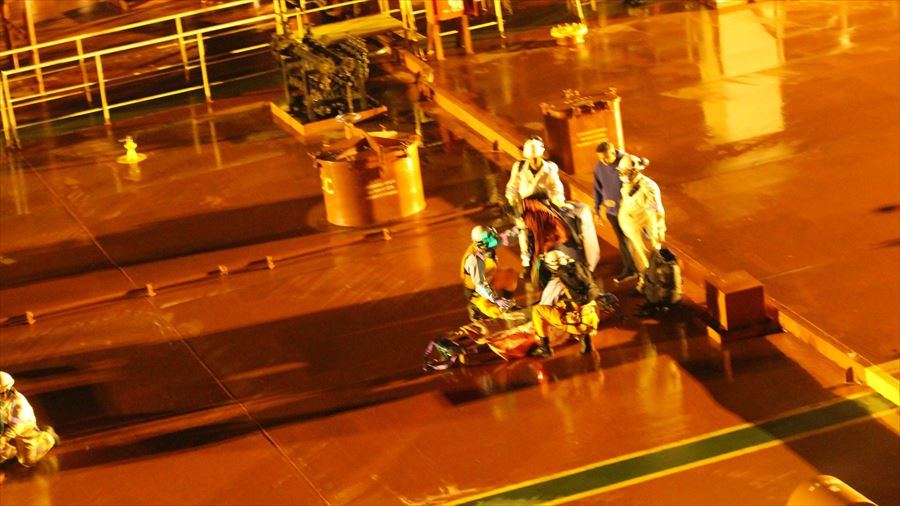 西表北西沖貨物船乗組員吊り上げ救助 令和3年3月5日午前0時35分ころ、西表島北西沖でバハマ籍タンカー船「BAKER SPIRIT」の乗組員が体調不良を訴えており、病院への搬送を要請したいと第十一管区海上保安本部に通報がありました。天候不良の中、石垣基地所属のヘリコプターにより28歳の男性1名を吊り上げ救助し、真栄里暫定ヘリポートへ搬送し石垣市消防本部の救急車に引き継ぎました。